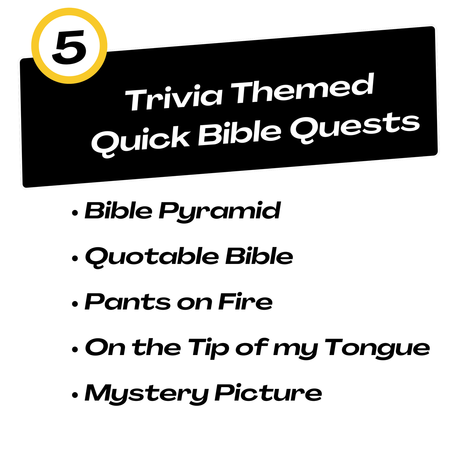 This bundle challenges players with Bible trivia, ranging from random questions to more focused topics. Put their understanding of the Bible to the test with a diverse range of trivia questions.